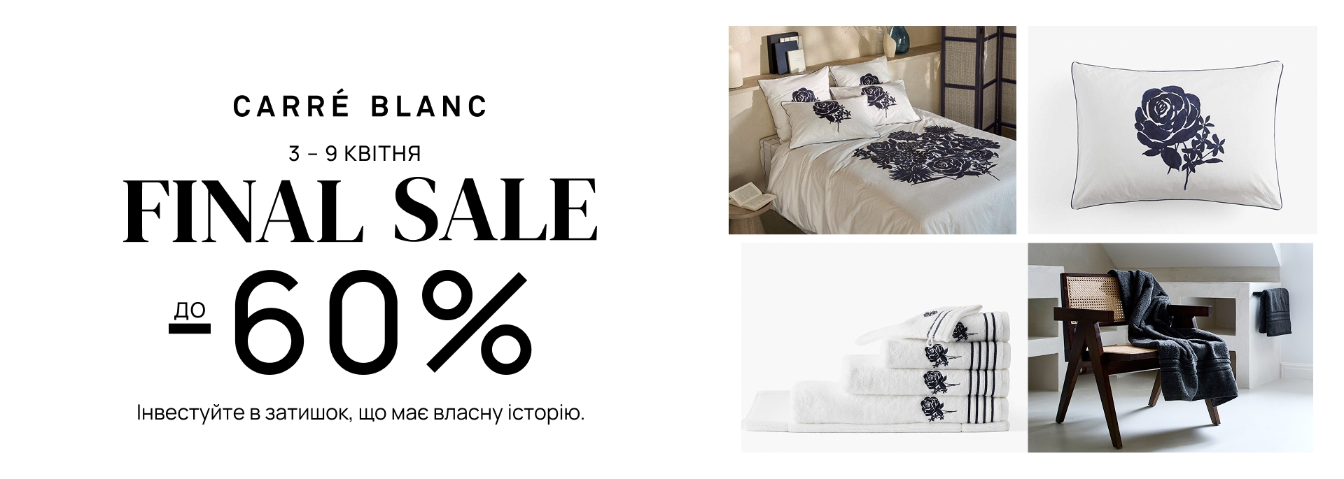 Ми вітаємо вас у нашому інтернет-магазині. Ну, а хто такі «ми»? Офіційний дистриб'ютор товарів від французького лідера на ринку ексклюзивної постільної білизни? Так. Частка величезної франчайзинг-імперії Carre Blanc, що розкинулася від Бельгії до Марокко та від Канади до України? Так. Ну і, звичайно, зручний сайт, за допомогою якого ви можете обрати та купити якісну постільну білизну люкс-класу — подушки, ковдри, простирадла, наволочки, покривала, підковдри, а також дитячі конверти, іграшки, халати, піжами, тапочки для ванної кімнати, банні, пляжні, кухонні рушники, скатертини та багато іншого.