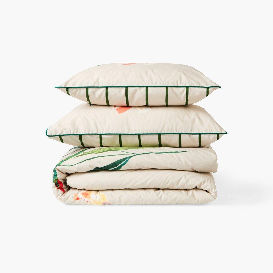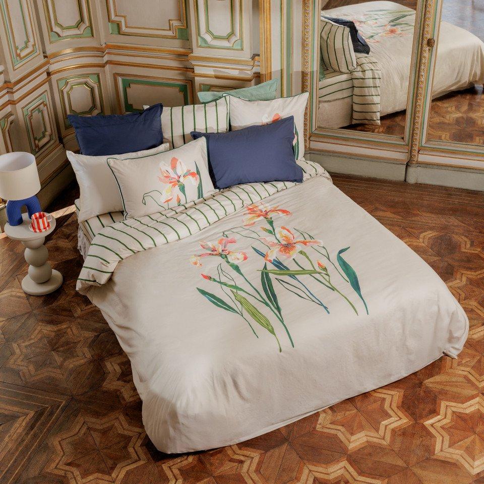 Двостороння підковдра LYSIRIS є основним елементом колекції постільної білизни, що відрізняється художнім квітковим принтом з одного боку та контрастною графічною смужкою з іншого. Виріб виготовлено з якісної бавовни та сертифіковано OEKO-TEX® STANDARD 100.