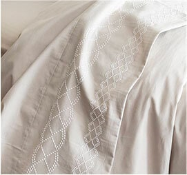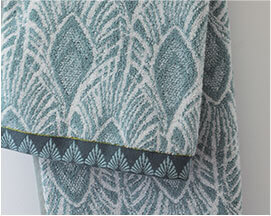 Жаккард Традиційний матеріал, який використовується для створення постільної білизни та аксесуарів для ванної та кухні. Складне сплетіння ниток утворює малюнок, який видно з обох боків тканини. |