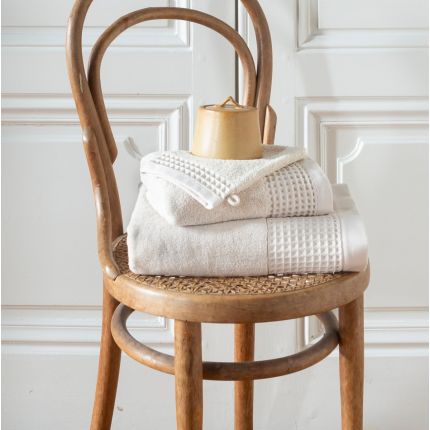 Якщо ви затятий захисник екології, молочний банний набір SOURCE вас порадує. Наділений етикеткою GOTS, він дозволяє вам поєднувати задоволення, комфорт та повагу до ваших екологічних та етичних переконань. Кольори доступні в ніжних монохромних м'яких та природних відтінках. Зроблені з щільної короткої махри банні або душові простирадла, міні та інші рушники або навіть мочалки з колекції SOURCE прикрашені ґратами у вигляді сот. Що стосується килимка для ванної SOURCE, його щільна і міцна тканина жакарда забезпечує приємну текстуру під ногами.